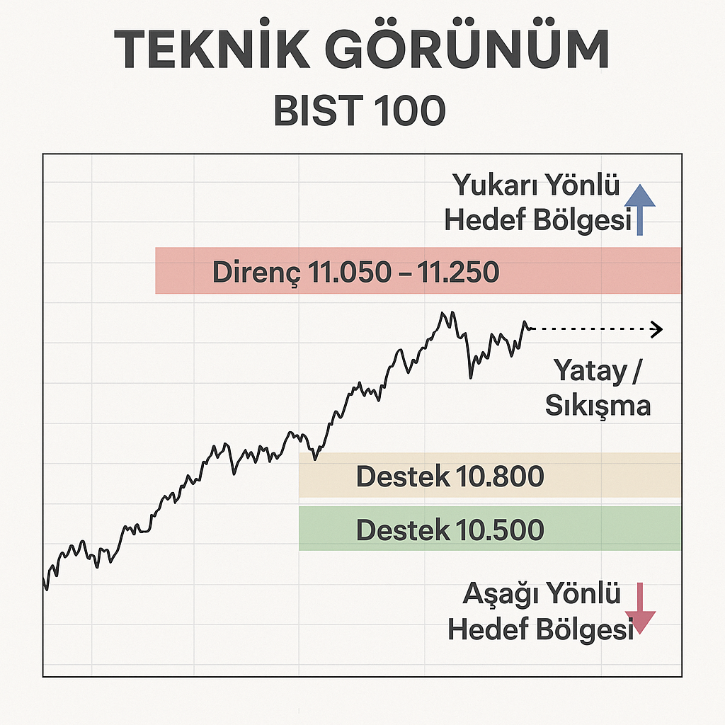 Yukarıda ise 11.050–11.250 puan aralığı güçlü direnç olarak öne çıkıyor. Endeksin bu bölgeyi hacimli biçimde aşması, yeni bir yükseliş trendi için kapı aralayabilir.