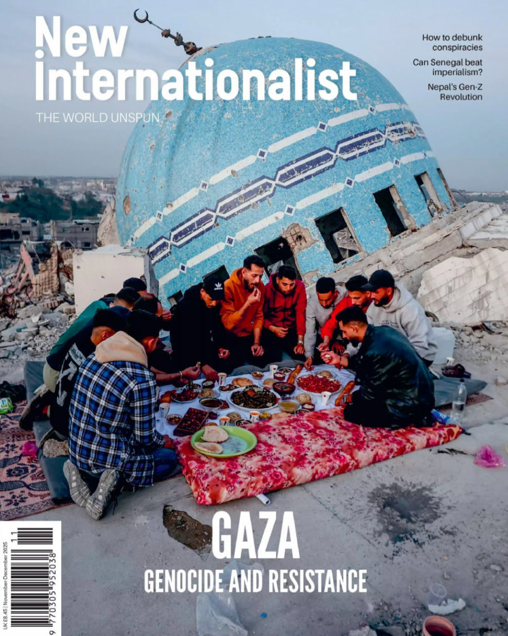 Birçok derginin kapağında, yıkılmış şehir siluetleri, çocuk figürleri, Gazze haritası ve beyaz-siyah kontrast tonlarda güçlü mesajlar yer aldı.